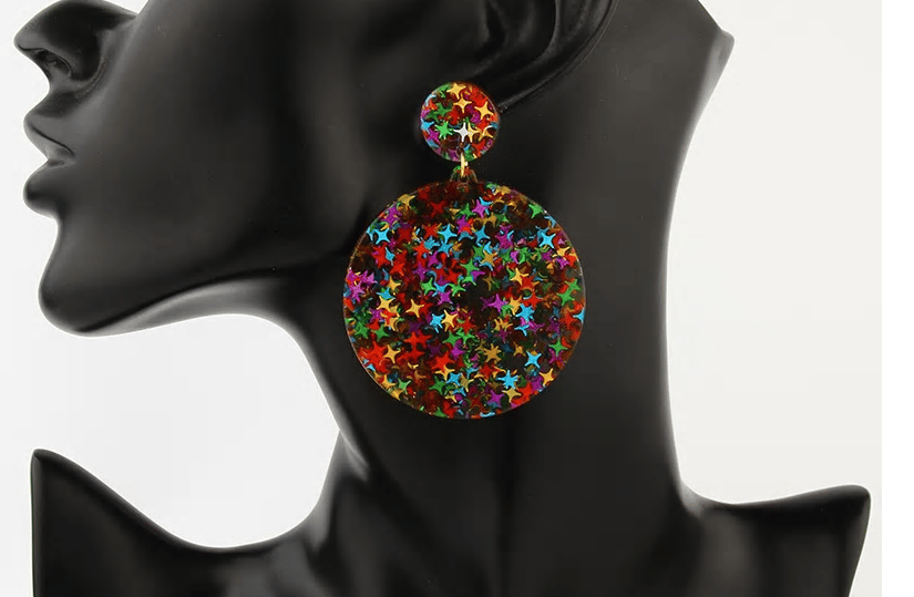 Sparkle and Twinkle with these Star filled Acrylic Earrings. Available in three shapes: Round, Oval, Tear drop